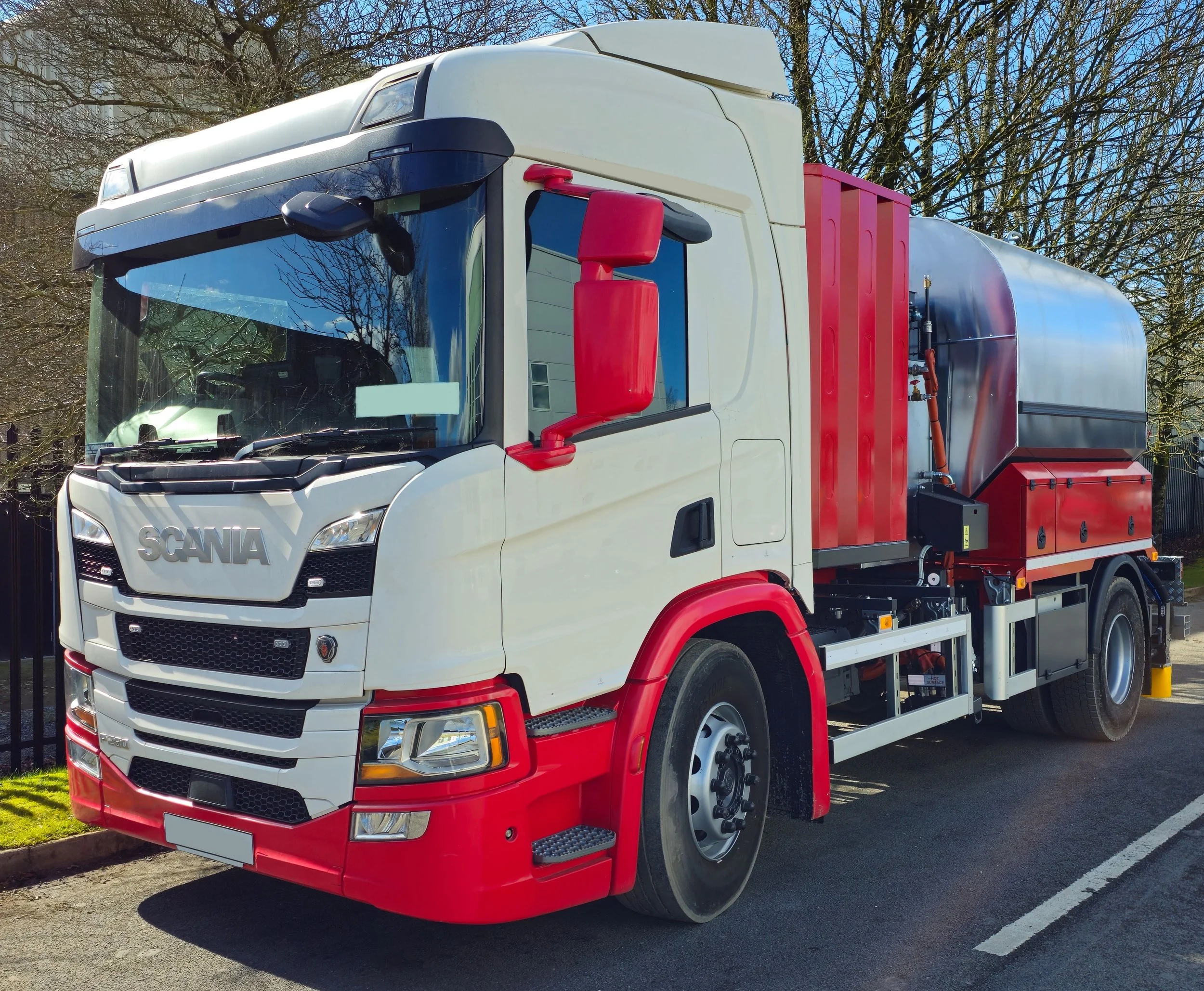 This advanced machine features a 6,000-litre Emulsion tank and an upgraded Bitumen Melter with highly insulated walls, equipped with joint sealer arms on both sides of the truck all mounted on a used Scania P280 supplied by Unilok.